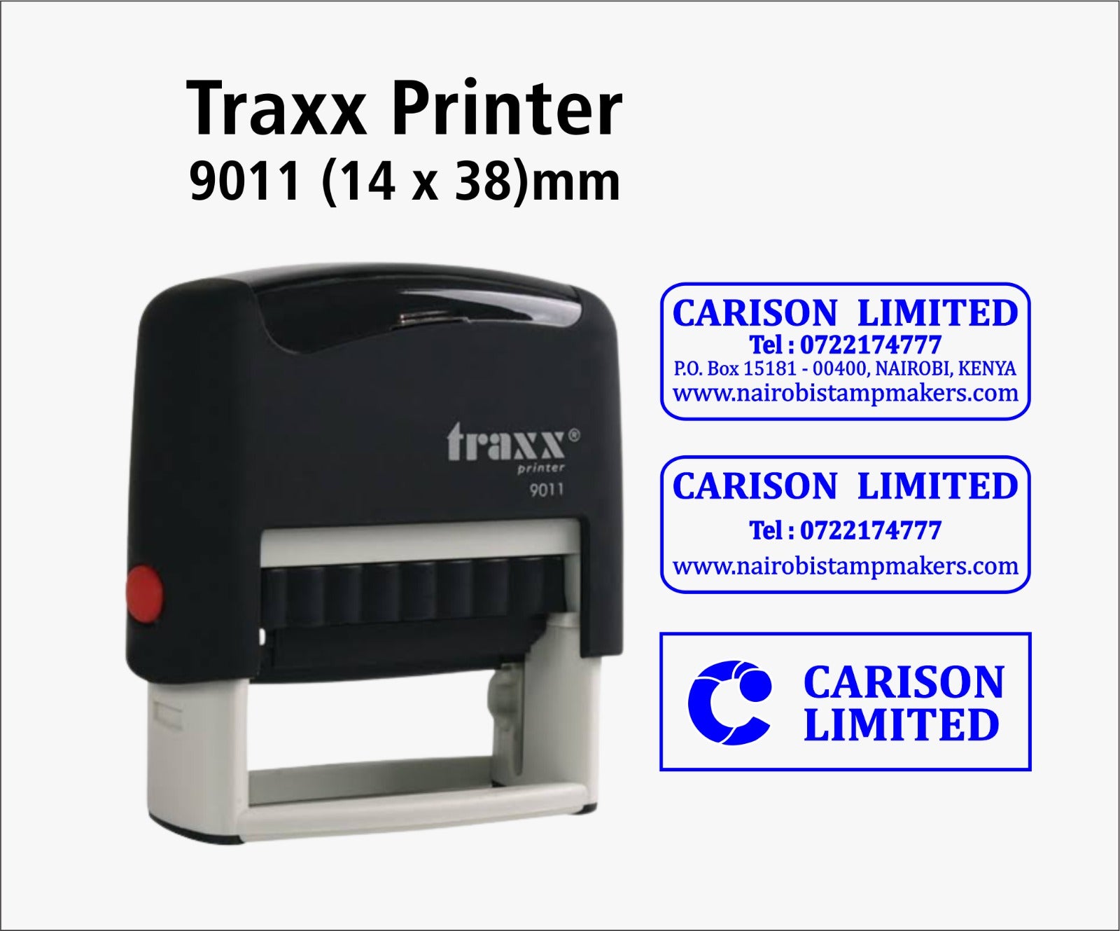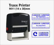 Introducing AccuMark Pro: The Traxx Printer 38x14mm Self-Inking Stamp, the ultimate customizable tool for precise and efficient stamping. Elevate your brand presence with personalized imprints tailored to your company's name and details.